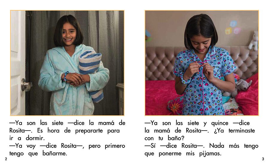 Es hora de que Rosita se vaya a la cama. Lee este libro para que veas lo que ella hace y cuanto tiempo le toma.