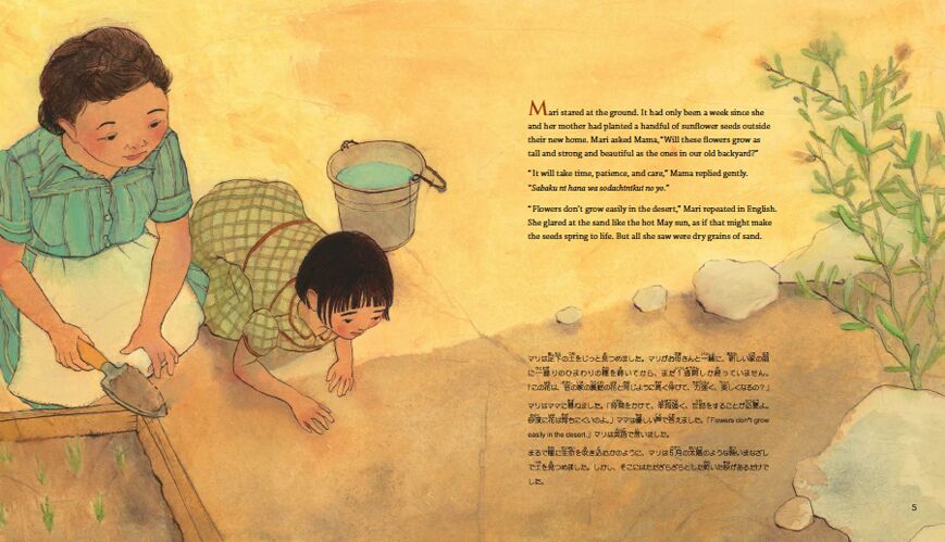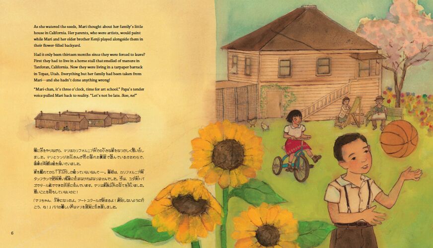 Mari wonders if anything can bloom at Topaz, where her family is interned along with thousands of other Japanese Americans during World War II. The summer sun is blazingly hot, and Mari’s art class has begun. But it’s hard to think of anything to draw in a place where nothing beautiful grows. Somehow, glimmers of hope begin to surface under the harsh sun–in the eyes of a kindly art teacher, in the tender words of Mari’s parents, and in the smile of a new friend.