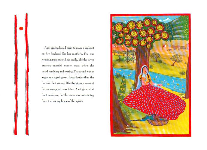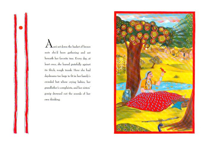 One day Aani is resting against her favorite tree when she hears the unfamiliar roar of trucks. She alerts the village women, the eldest of whom says the sounds are made by men from the city who have come to cut down the trees. The women explain to the cutters that their trees provide the villagers with food and fuel; are home to animals; and prevent erosion. But the men are heedless. As the cutters move closer, Aani acts with quiet, instinctive heroism to save not only her special tree, but also the village’s beloved forest.