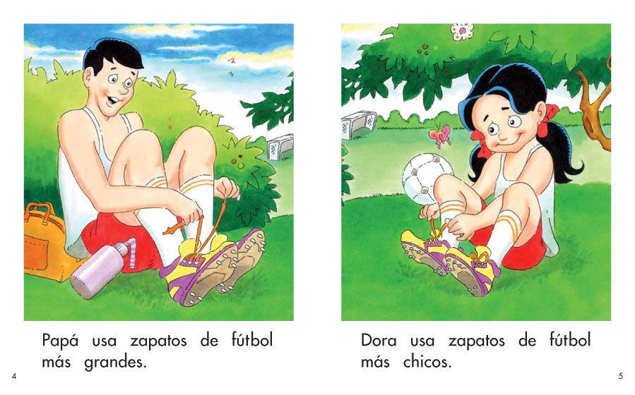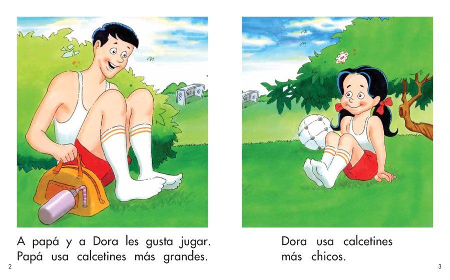 Dora y Papá se preparan para jugar fútbol. Lee este libro para ver qué necesitan usar para el juego.