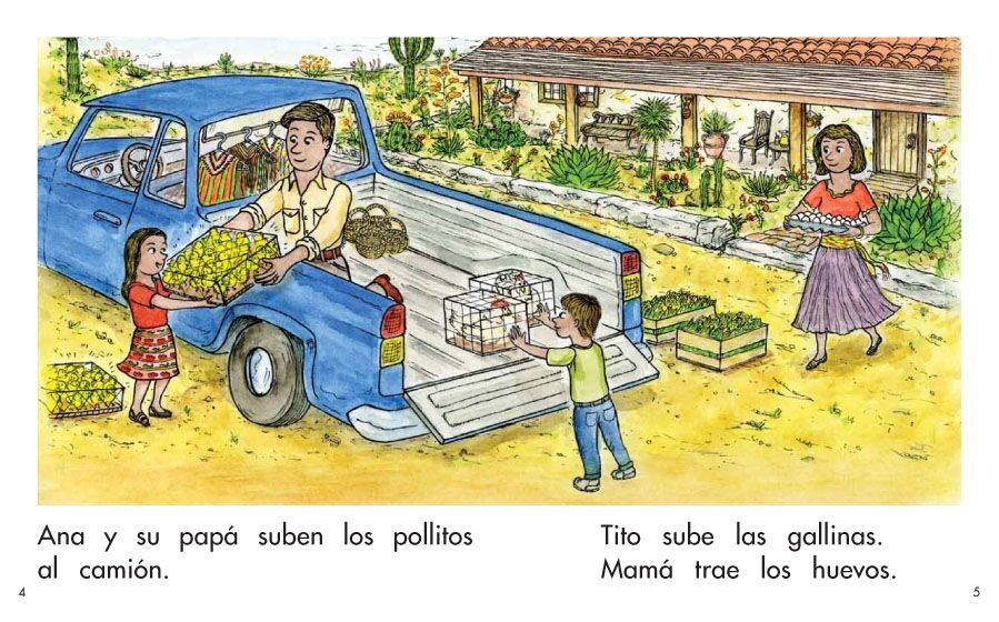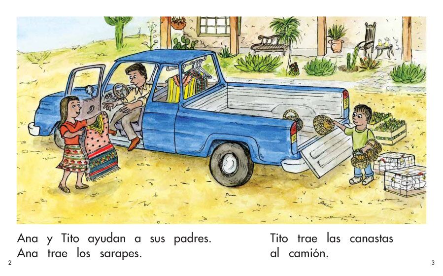 Ana y Tito ayudan a sus padres a estar listos para el mercado. Lee este libro para ver lo que suben al camión para vender.