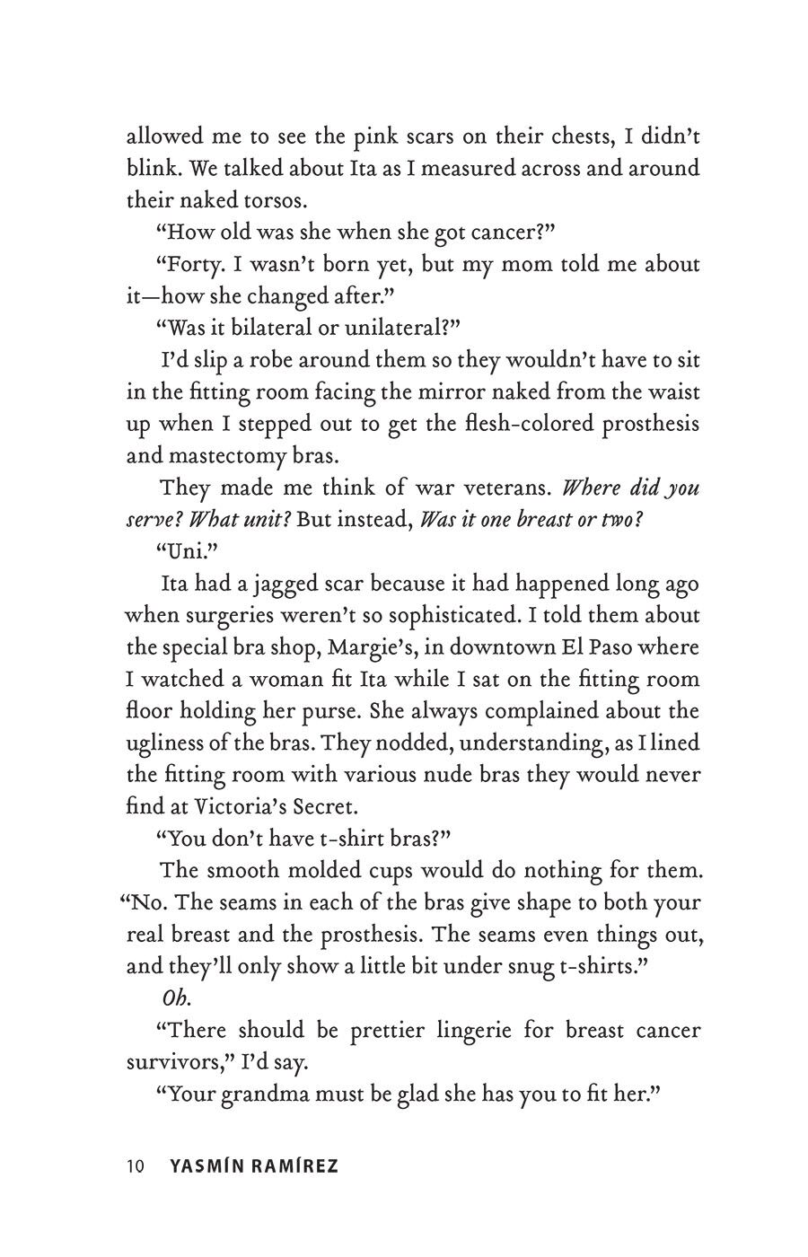 Having spent years of her twenties feeling lost–working an intensely taxing retail job and turning to bars for comfort–the blow of her grandmother’s death pushes Yasmín to unravel. So she comes home to El Paso, Texas, where people know how to spell her accented name and her mother helps her figure out what to do with her life. Once she finally starts pursuing her passion for writing, Yasmín processes her grief by telling the story of her Ita, a resilient matriarch who was far from the stereotypical domestic abuelita. Yasmín remembers watching boxing matches at a dive bar with her grandmother, Ita wistfully singing old Mexican classics, her mastectomy scar, and of course, her lesson on how to properly ball your fist for a good punch. Interviewing her mom and older sister, Yasmín learns even more about why her Ita was so tough–the abusive men, the toil of almostliterally back-breaking jobs, and the guilt of abortions that went against her culture.