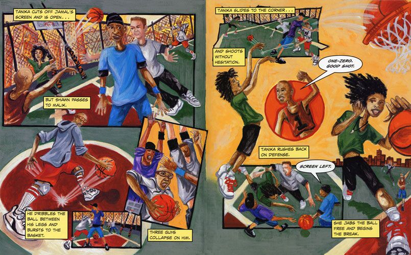 John Coy, author of the award-winning Strong to the Hoop, draws once more from his bottomless knowledge of basketball to bring readers the grit, sweat, and realistic “hoop-speak” that passes between players who know and love the game. Packed full of comic book style action and locales from all over the globe.