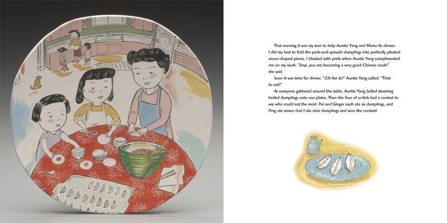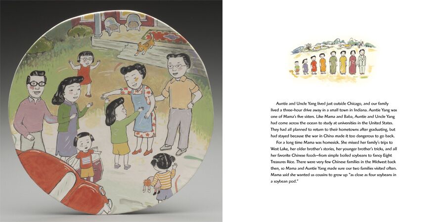 Jinyi and her sister love visiting Auntie and Uncle Yang’s home, where they enjoy dumpling-eating contests and backyard adventures with their cousins. One weekend, on a Sunday drive among the cornfields near Chicago, Auntie Yang spots something she has never before seen in Illinois. Could it be one of their favorite Chinese foods-soybeans?!
