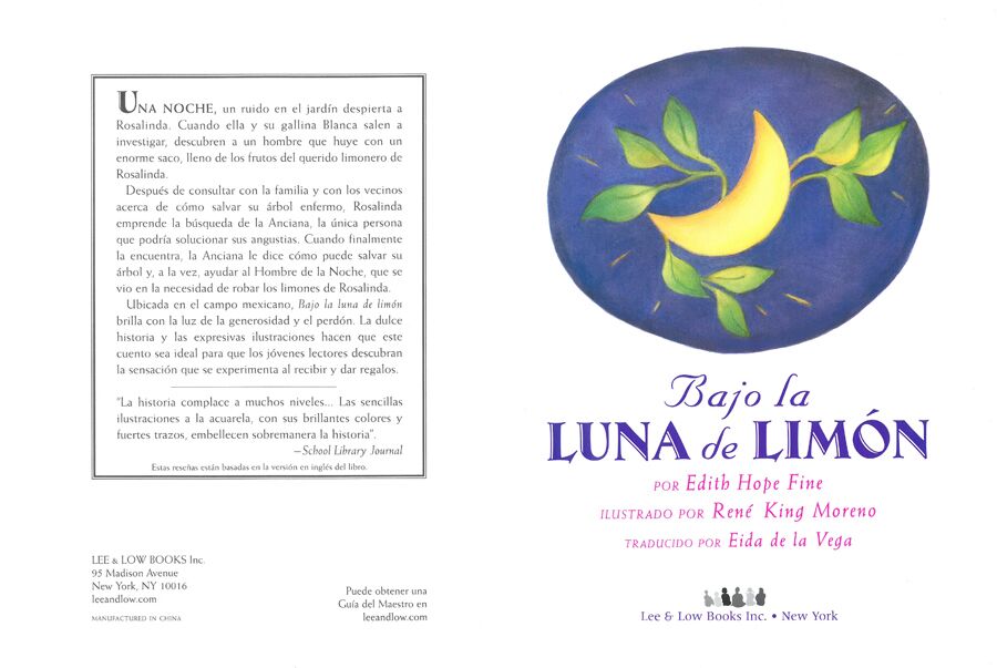 Translated from Under the Lemon Moon, Bajo la luna de limón shines with the light of generosity and forgiveness. The gentle story and glowing illustrations make this tale perfect for sharing with young readers who are discovering how it feels to receive and give gifts.