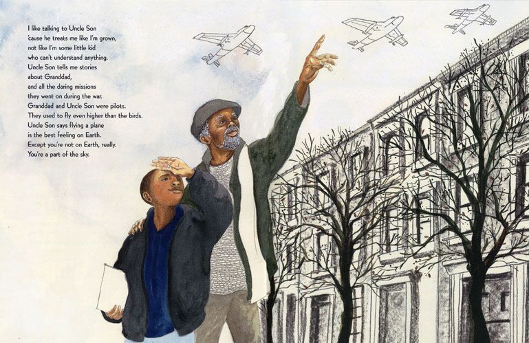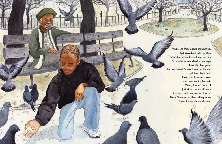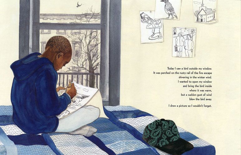 As Bird struggles to understand the death of his beloved grandfather and his older brother’s drug addiction, he escapes into his art. Drawing is an outlet for Bird’s emotions and imagination, and provides a path to making sense of his world. In time, with the help of his grandfather’s friend, Bird finds his own special somethin’ and wings to fly.