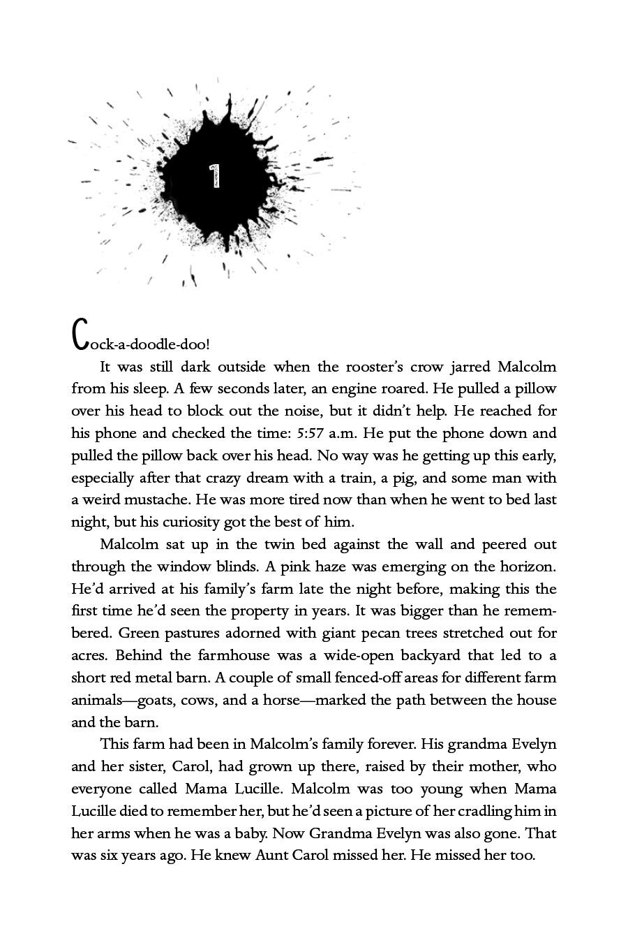 A few days after his arrival, his great-aunt tells him that the State is acquiring the farm to widen a highway. It’s not news Malcolm is concerned about, but someone plans to make it his concern. One minute Malcolm is drawing in the farmhouse attic, and the next he’s looking through the eyes of his ancestor Cedric Johnson in 1866.
