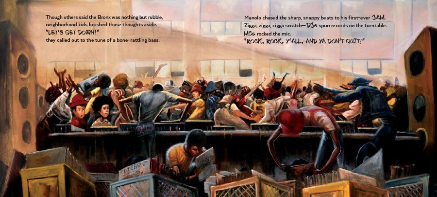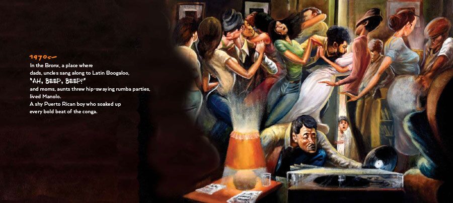 In the 1970s, many said the Bronx was just a pile of rubble, but for a shy kid like Manolo, it was alive with rhythm and music. He grew up with salsa dance parties at home and DJs battling on turntables on the street. Inspired by these new beats and the moves of James Brown, neighborhood boys and girls started dancing with a mix of twists, slides, and shuffles. The rhythm of the Toprock. Drop of the Six-step. Wiggle of the Worm. A new dance style called breaking was on the rise, and Manolo wanted to be a part of it.