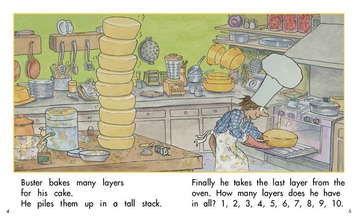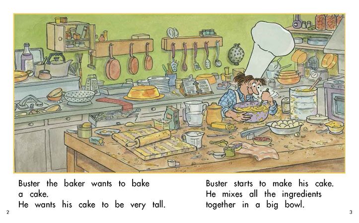 Buster the baker wants to bake a cake. Read this story to see what happens.