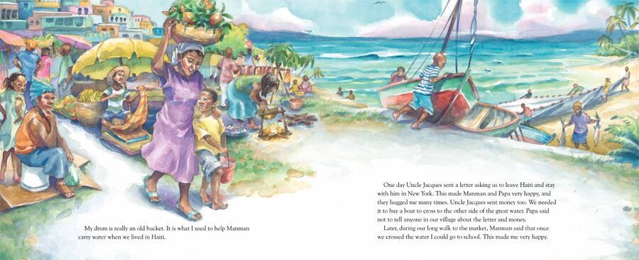 Henri and his parents leave their homeland, Haiti, after they receive an invitation from an uncle to come to New York City. Only able to afford a small, rickety boat, the family sets out in the middle of the night in search of a better life. Out at sea, Henri dreams of what life will be like “across the great waters.”