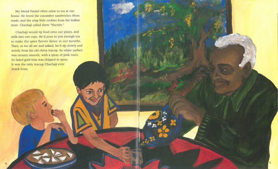 Neel loves listening to Chachaji’s many stories over steaming cups of tea. Chachaji’s tales of great Hindu gods and demons and of his adventures in the Indian Army leave Neel openmouthed. But it is the tale of his great-uncle’s favorite teacup that teaches Neel the most, for Chachaji’s cup holds far more than sweet, spicy masala chai. When the precious cup and Chachaji’s health both prove to be more fragile than they look, Neel knows what he must do.