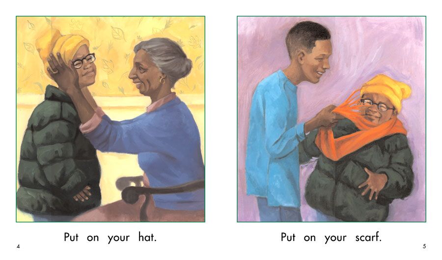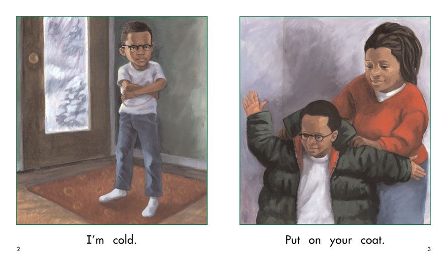 An African American boy’s family lovingly piles so much clothing on him that he quickly goes from feeling cold to feeling hot.