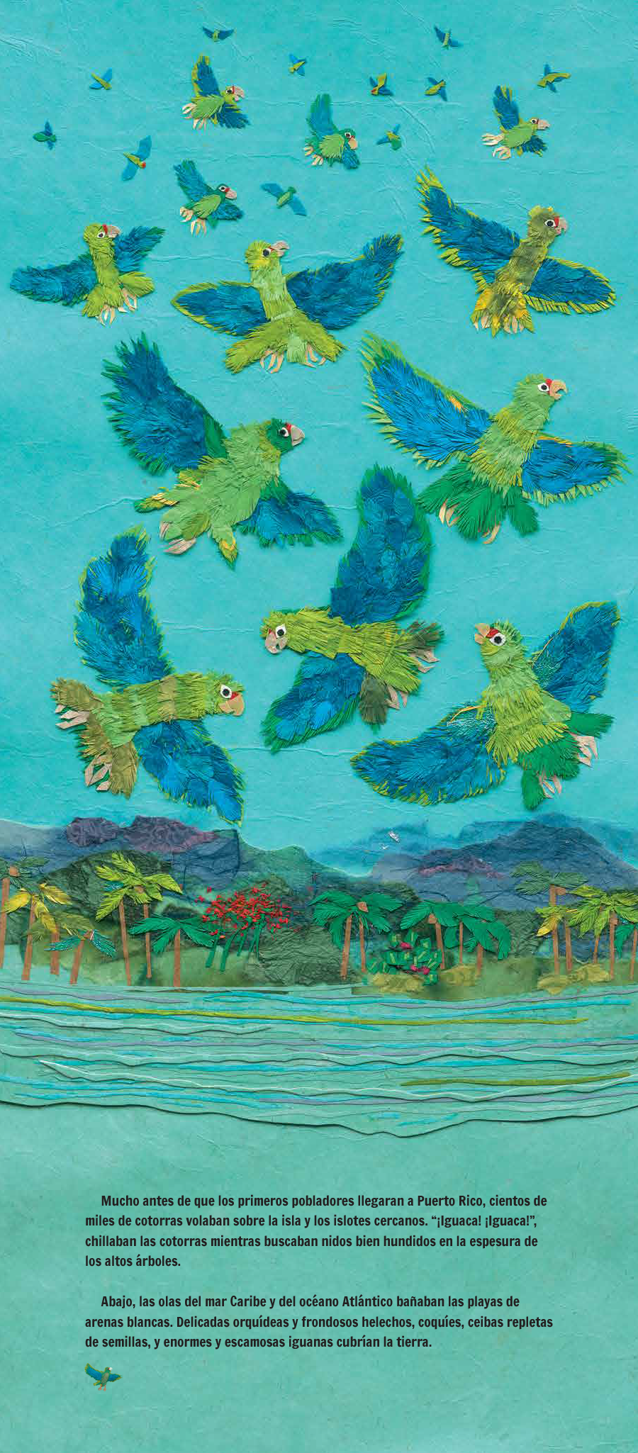 Al igual que hicieron en su premiado libro El mangle, Roth y Trumbore cuentan dos historias apasionantes. Ven a descubrir las fascinantes historias entrelazadas de Puerto Rico y de las singulares cotorras que viven en las copas de los árboles de la isla.