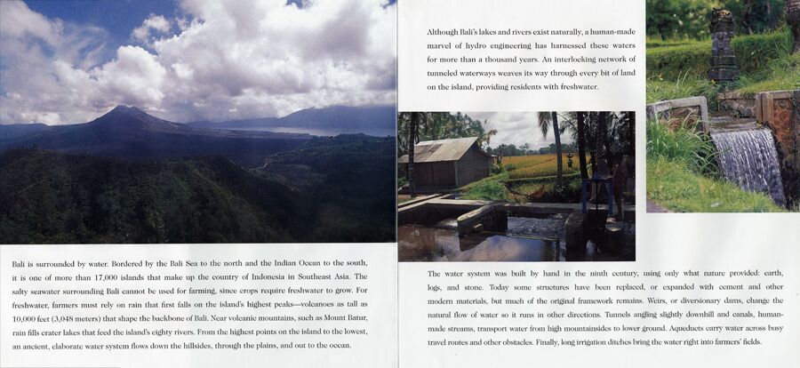 Balinese farmers have planted rice using an intricate system of water sharing and crop rotation for more than a thousand years. Intertwined with their spiritual, social, and day-to-day lives, this system has made Bali a leading producer of one of the world’s most important crops. And because Balinese rice farming respects the balances of nature, it serves as a remarkable example of sustainable agriculture in an increasingly industrialized world.