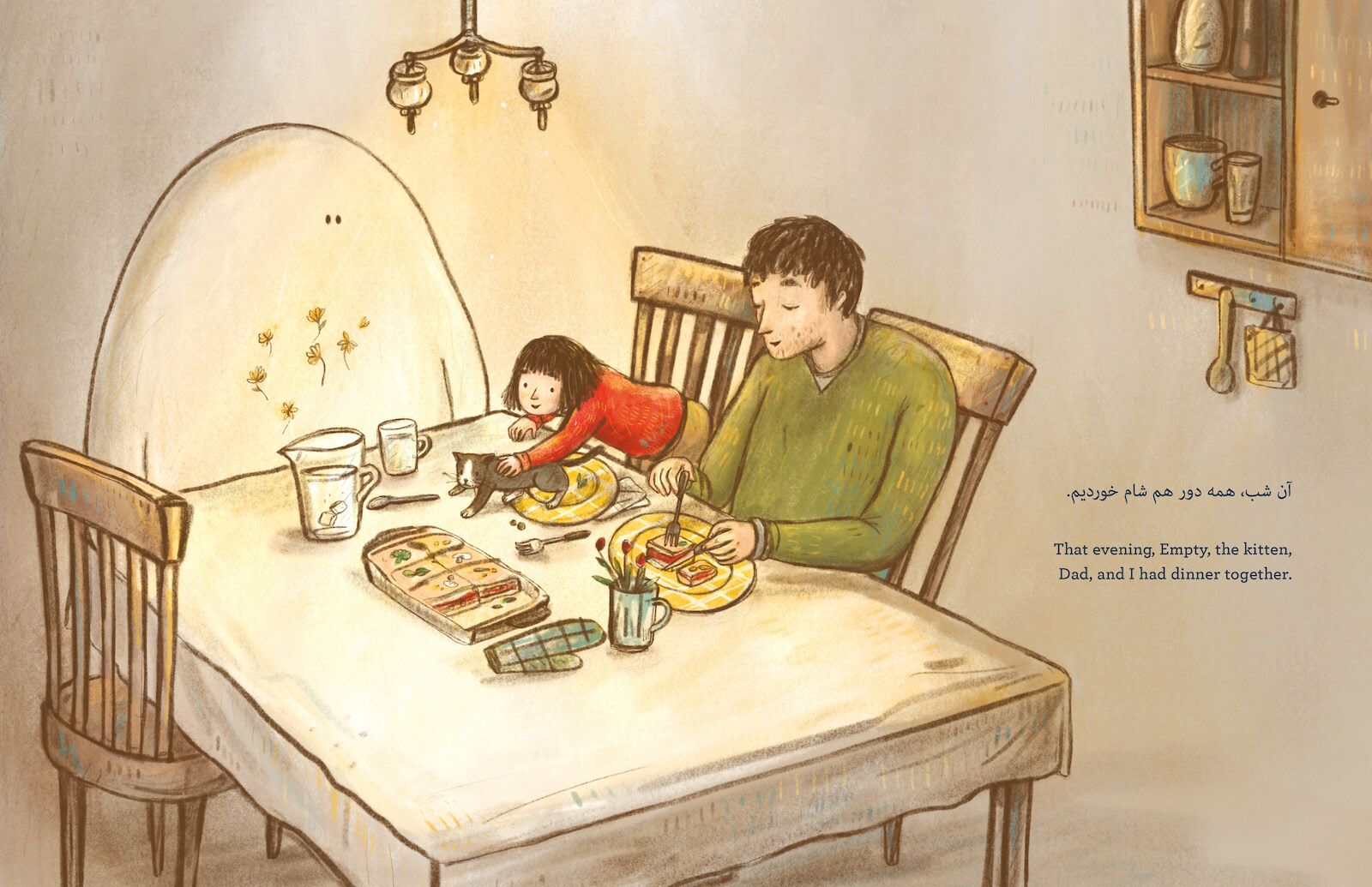 Originally published in Iran, this bilingual Persian-English picture book provides a gentle starting point for discussing death and grief with young readers. Its spare, poignant text and artwork gives children a concrete point of reference for the complex emotions people experience after the loss of a loved one. Readers of any age, however, will find comfort in the encouraging message of this beautiful book.