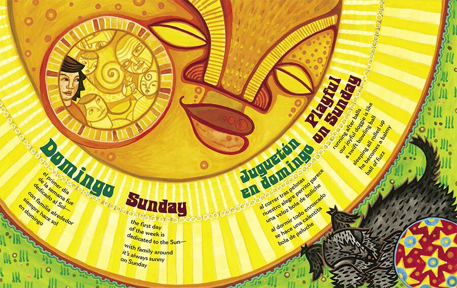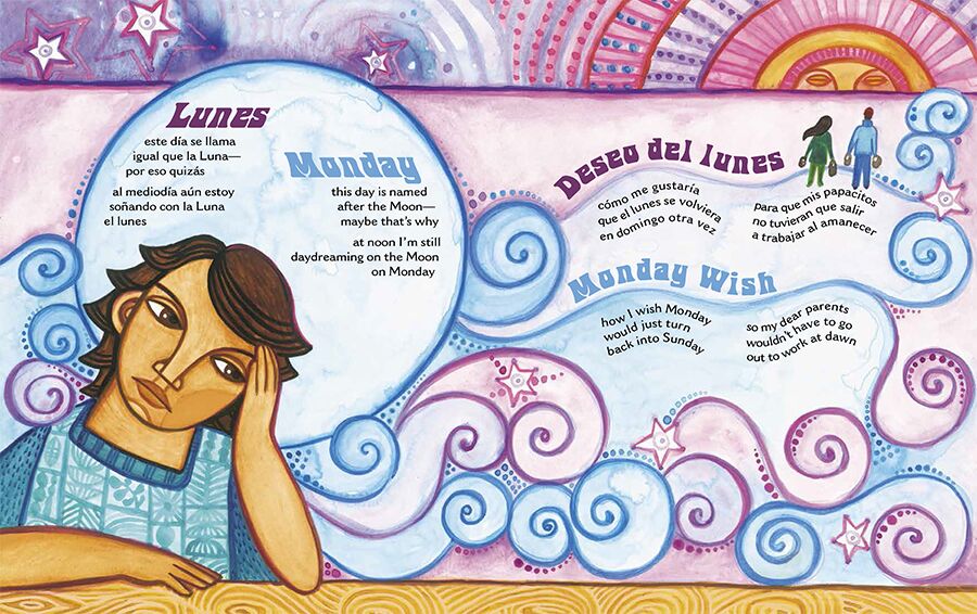 Get ready for a bilingual collection of poems that takes us through the week day by day! Children spend Sunday visiting their grandparents, play with school friends on Monday, daydream on Tuesday, eat popcorn at the local market on Wednesday, and more, until we arrive at Saturday, when they get to play nonstop all day. Along the way, we also learn how the names of the seven days came to be.