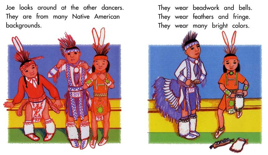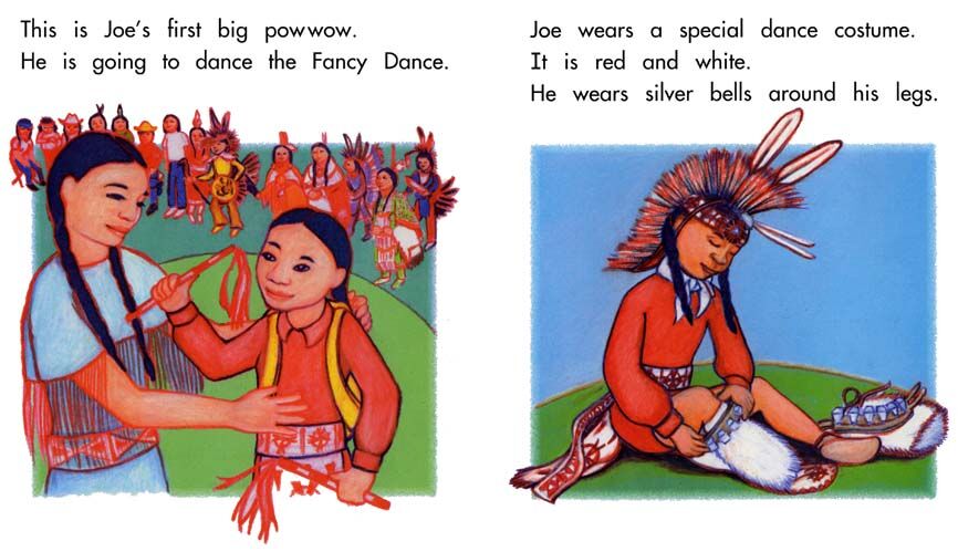 Joe is dancing the Fancy Dance at a powwow for the first time. He is nervous, but once the dance starts he knows just what to do.