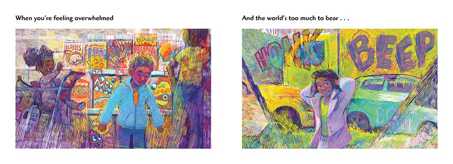 When four neurodivergent kids face some stressful moments, they use body movements called stims to self-regulate their emotions. One boy tickles the space next to his face; a girl flutters her fingers by her ears; another boy kicks his feet like splashy flippers; another girl directs her hands like a conductor! As the children say fun words, flap their hands, and engage in other stims, their actions build in energy and joyousness until their inner calm is restored.