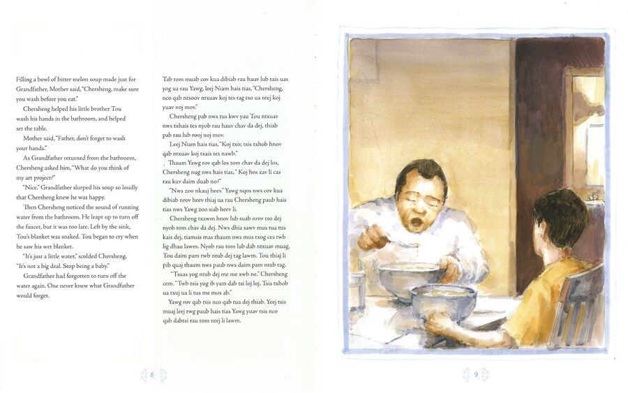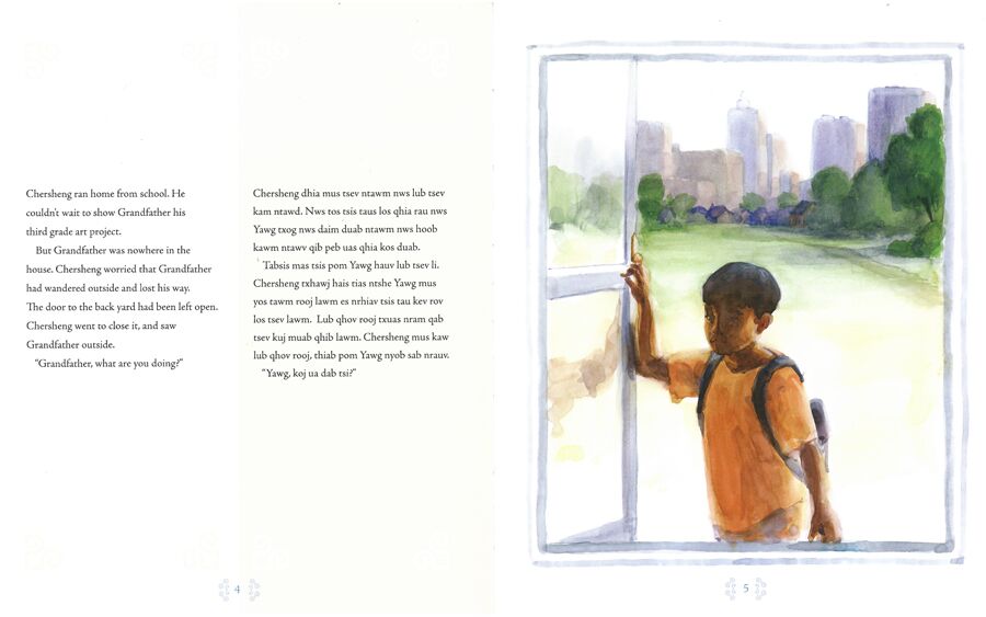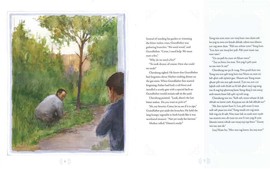 Chersheng’s grandfather is beginning to forget things: little things like turning off the water faucet and big things like Chersheng’s name. Sometimes he even forgets that he is in America now. Chersheng feels sad and helpless when he learns that Grandfather has Alzheimer’s Disease, but then Chersheng’s mother presents him with a story cloth stitched by Grandfather himself, embroidered in the Hmong tradition.