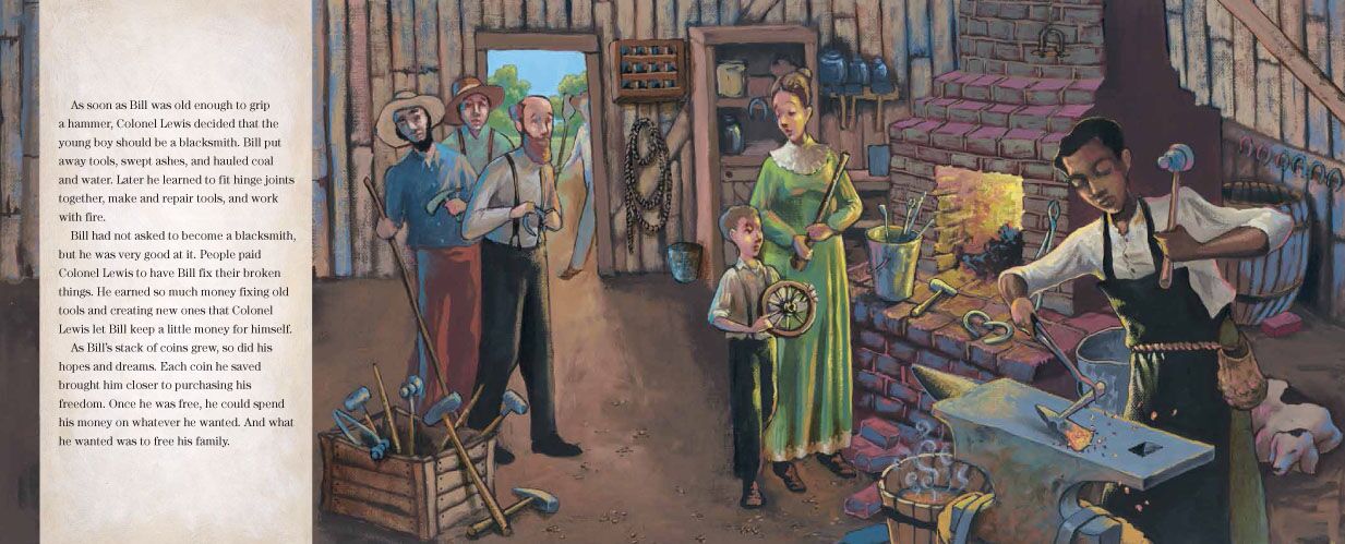 Born into slavery in Chattanooga, Tennessee, William “Bill” Lewis learned the blacksmith trade as soon as he was old enough to grip a hammer. He proved to be an exceptional blacksmith and earned so much money fixing old tools and creating new ones that he was allowed to keep a little money for himself. With just a few coins in his pocket, Bill set a daring plan in motion: he was determined to free his family.