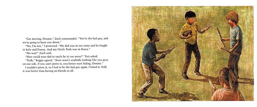 Donnie is tired of playing the bad guy every time he and his friends get together to play war. According to the other kids, Donnie should play the enemy-after all, as a Japanese American he looks like “them.” Instead, Donnie wishes they could just play his favorite game, football.