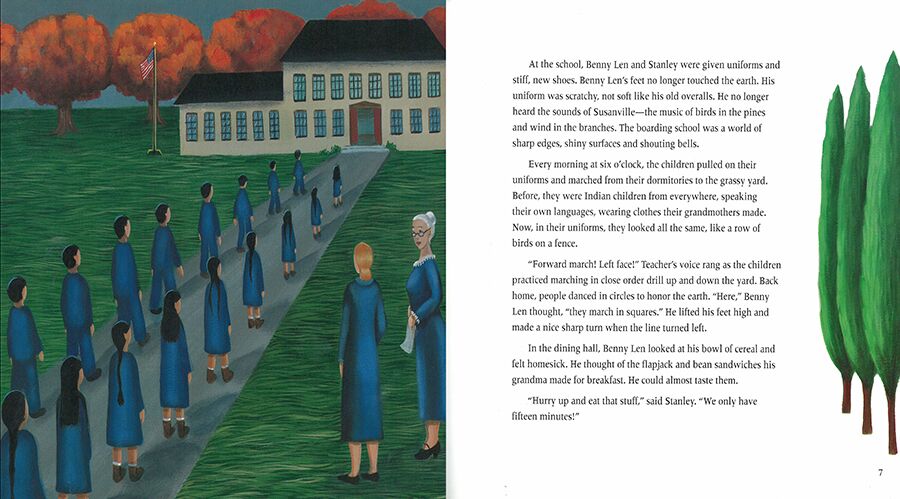 Two young brothers are separated from their family and sent to live in a government-run Indian residential school in the 1930s-an experience shared by generations of Native American children throughout North America. At these schools, children were forbidden to speak their Indian languages and made to unlearn their Indian ways. Sadly, they were often not able to go home to their families for summer vacation.