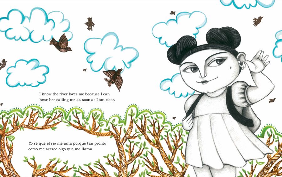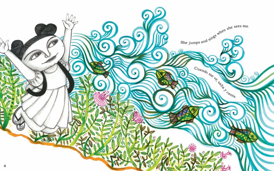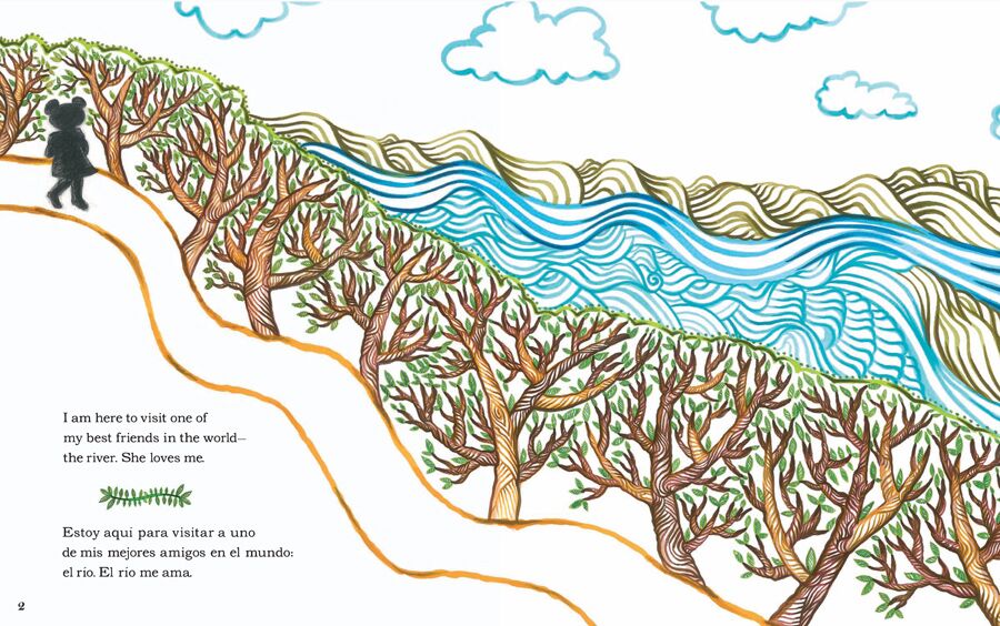 Whenever Maya visits the river, the river jumps up to greet her. It cools her down when the summer sun is too hot, and holds her up when she dives in. It keeps her company in the quiet of winter. The river takes care of Maya and Maya takes care of the river.