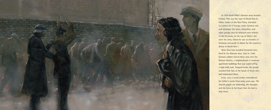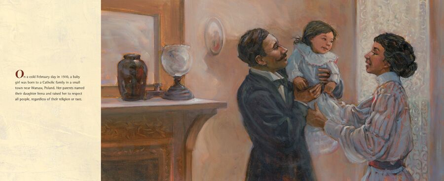 Irena Sendler, born to a Polish Catholic family, was raised to respect people of all backgrounds and to help those in need. She became a social worker; and after the German army occupied Poland during World War II, Irena knew she had to help the sick and starving Jews who were imprisoned in the Warsaw Ghetto. She began by smuggling food, clothing, and medicine into the ghetto, then turned to smuggling children out of the ghetto. Using false papers and creative means of escape, and at great personal risk, Irena helped rescue Jewish children and hide them in safe surroundings during the Holocaust. Hoping to reunite the children with their families after the war, Irena kept secret lists of the children’s identities.