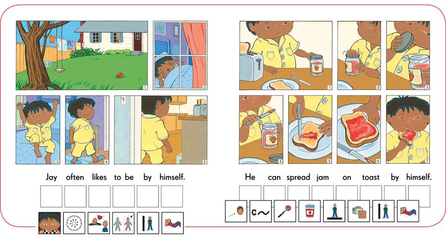 Jay can make his own breakfast, dress himself, and play by himself, but sometimes he feels sad and wishes for a friend. When a magical horse appears and befriends Jay, his wish comes true. Clear visual representation of the text, through sequential illustrations along with picture symbols (based on the commonly-used Boardmaker & Picture Communication Symbols), enables children to gain understanding of the story plot and to recognize printed words.