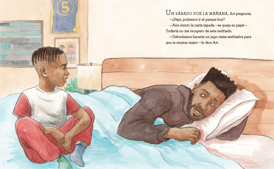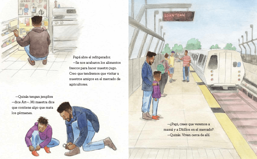Cuando el padre de Art no puede deshacerse de un resfriado, Art sabe exactamente lo que su papi necesita: ¡un delicioso jugo mata-resfriados! Después de buscar en su refrigerador y en la alacena, descubren que les hace falta un ingrediente clave: jengibre. Pero el encontrar jengibre los llevará al centro, al mercado de agricultores, a la cooperativa de alimentos, a la tienda de productos de África Occidental… y a un encuentro inesperado que une a todos y resulta en una sabrosa celebración.
