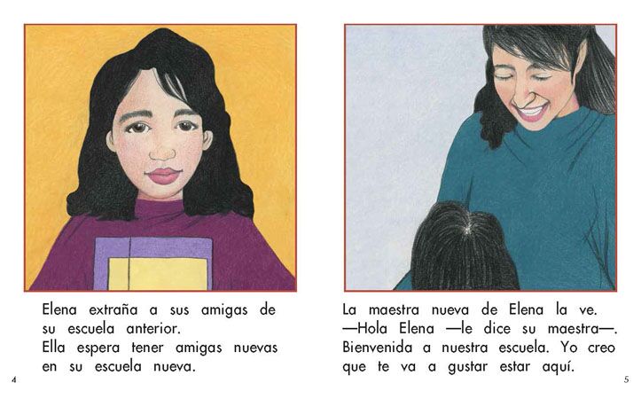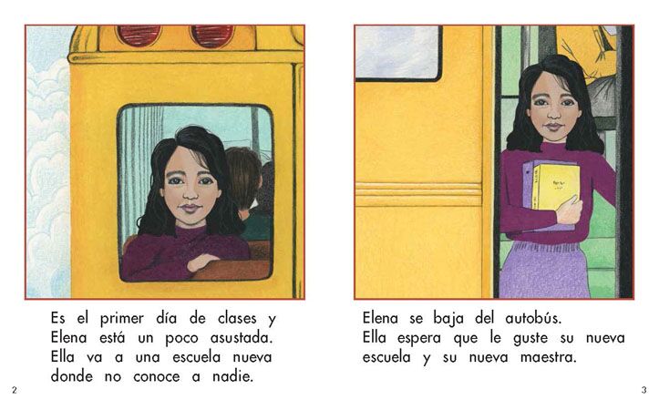Es el primer día de Elena en su nueva escuela. Lee este libro para que veas lo que pasa.