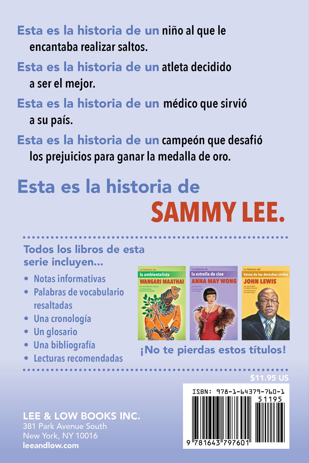 La historia de determinacíon y triumfo de Sammy Lee es un ejemplo extraordinario para cualqueira que esté persiguiendo un sueño. Este libro por capítulos incluye ilustraciones en blanco y negro, así como barras laterales sobre temas relacionados, una línea de tiempo, un glosario y lecturas recomendadas. Perfecto para lectores que buscan pasar de libros ilustrados al siguiente nivel de lectura.