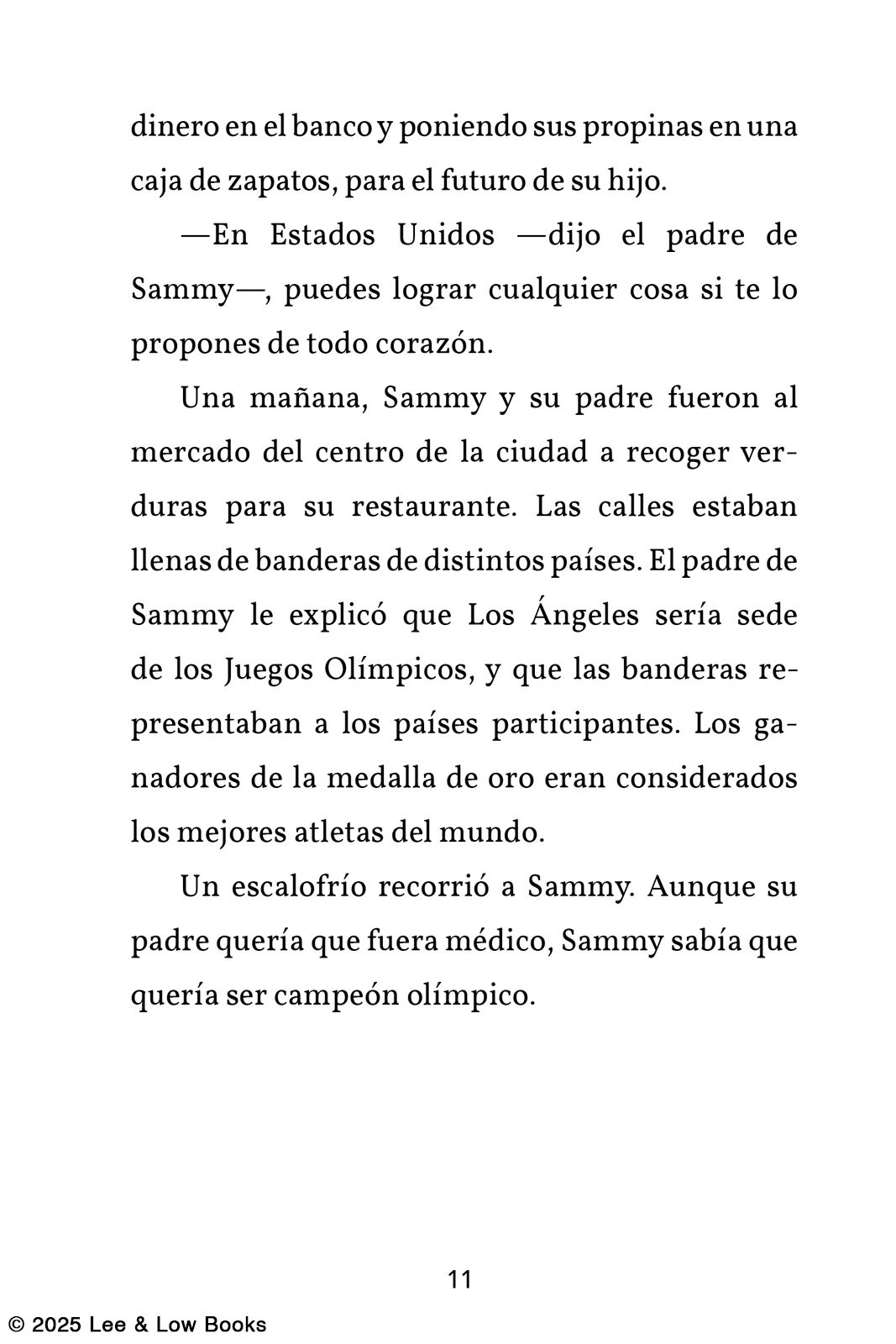 Desde su primer clavado en una piscina publica a los doce años, Sammy Lee quedó enamorado del sentido de volar. Pero en 1932, las personas de color –como el coreanoamericano Sammy– solo podían entrar a la piscina publica una vez a la semana. El padre de Sammy le aconsejó que se olvidara de su pasión por los saltos y lo empujó a enfocarse en estudiar para ser doctor. Pero Sammy Lee persistió en su practica de saltos, a pesar del prejuicio que enfrentó, y estudió para ser doctor a la misma vez. Tras años y años de esforzarse, el Dr. Sammy Lee se zambulló en la historia olímpica en 1948 al convirtirse en el primer asiaticoestadounidense a ganar una medalla de oro en las Olimpiadas.