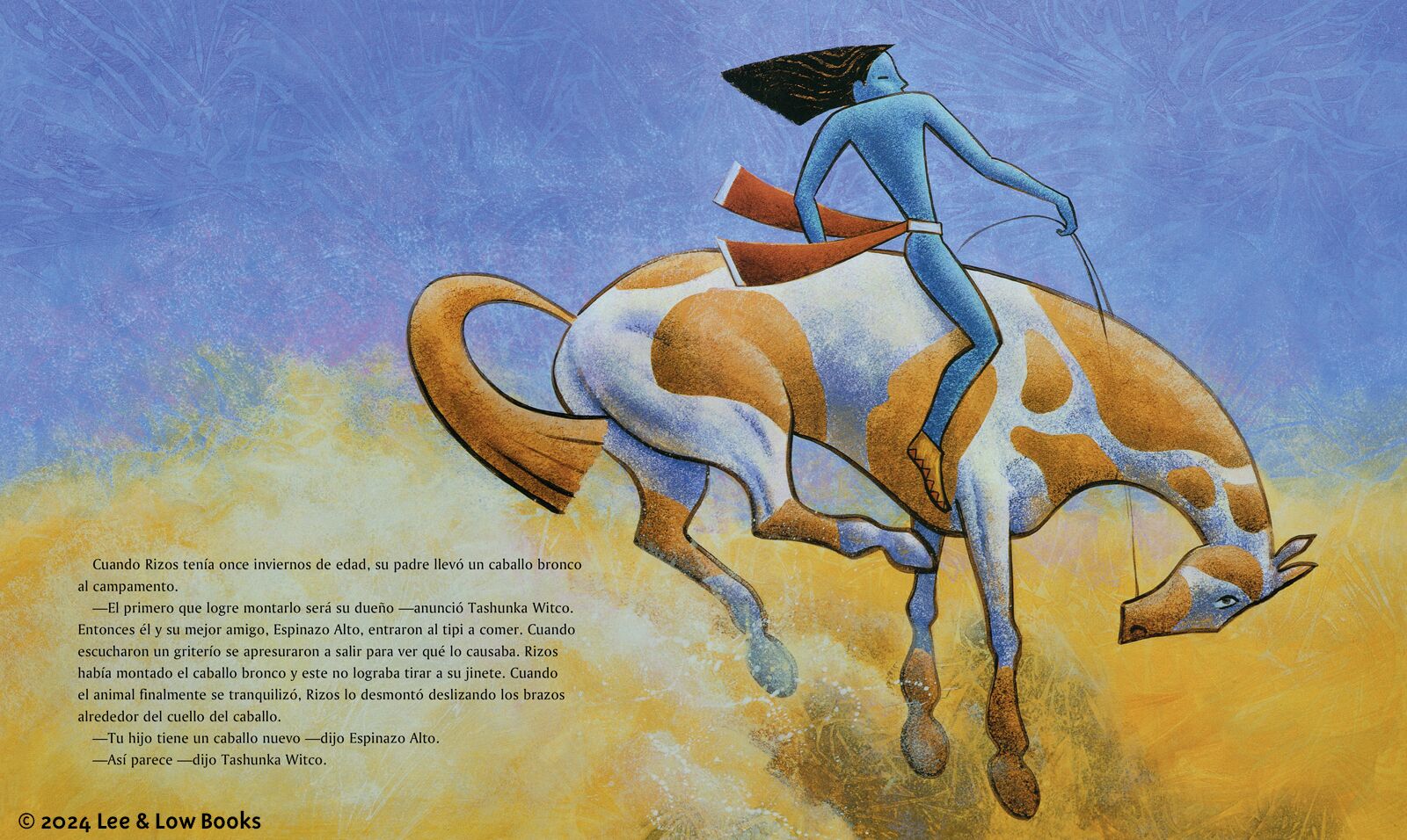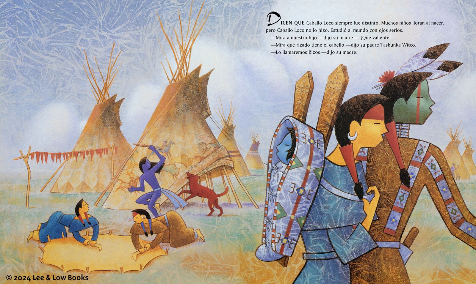 El renombrado autor abenaki, Joseph Bruchac, cuenta una historia apasionante y convincente de cómo el joven dedicado, Rizos, se convierte en el valiente guerrero Caballo Loco. El artista sioux S.D. Nelson, con pinturas inspiradas en el estilo de libro de contabilidad de pueblos nativos de las llanuras, evoca el drama y la tragedia de una figura importante en la historia estadounidense.