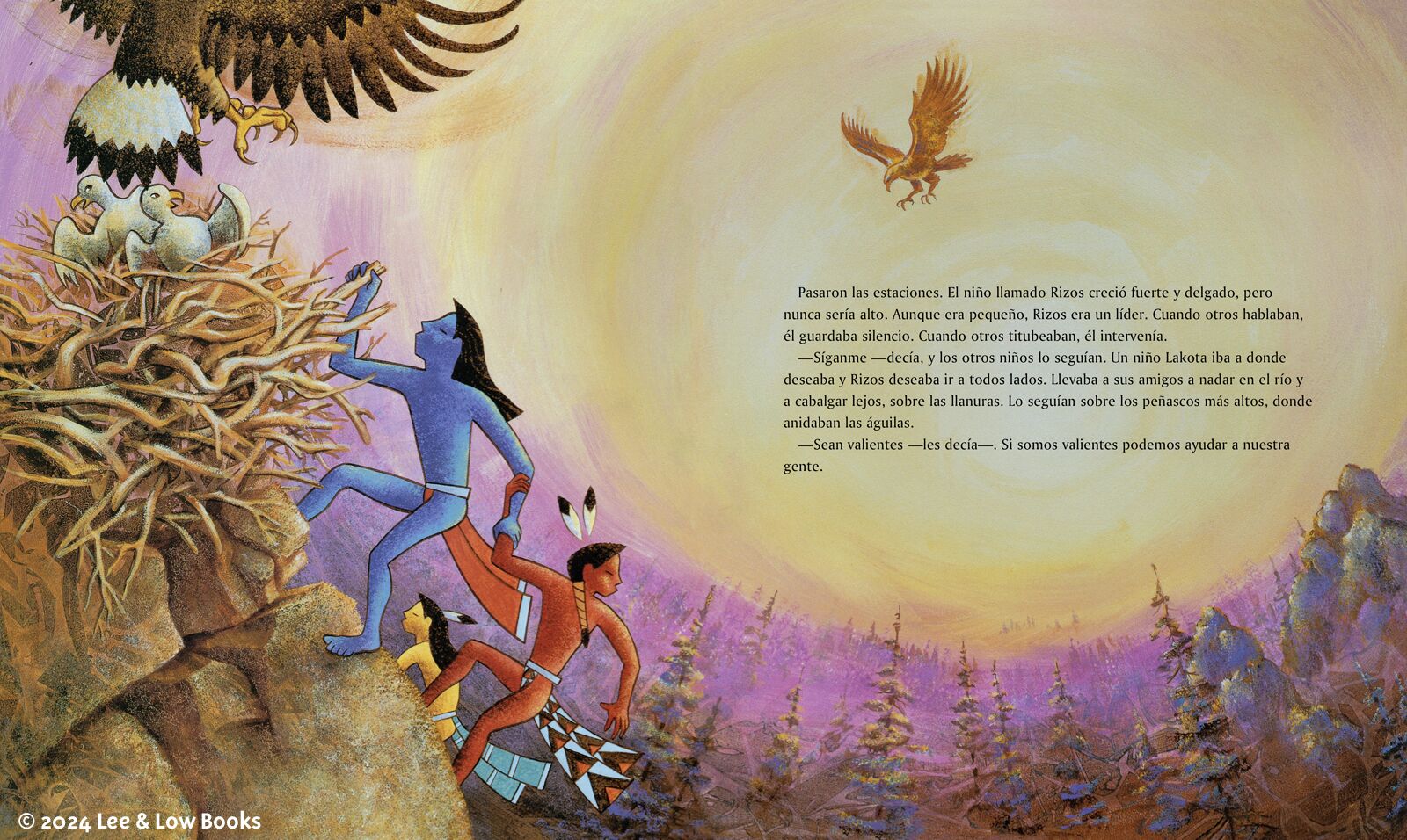 Rizos fue un líder incluso cuando era un niño, domaba caballos salvajes y cazaba poderosos búfalos. Pero toda su valentía no pudo prepararlo para los problemas que él y los otros Lakotas enfrentarían con los colonos blancos. Queriendo ayudar a su gente después de una feroz batalla que hirió de muerte al jefe Oso Conquistador, Rizos desafió la costumbre tradicional y arriesgó su propia vida al huir a las colinas en busca de una visión.