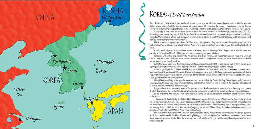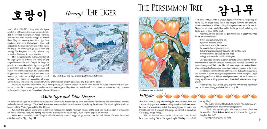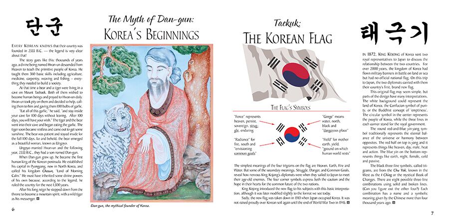 Read about the legend behind the founding of Korea, the meaning of the flag, and the creation of the Korean alphabet. Learn how to make kimchi, how to celebrate Korean holidays, and how people ironed their clothes before electricity. Every page explains an aspect of Korean culture and its changes through the years.