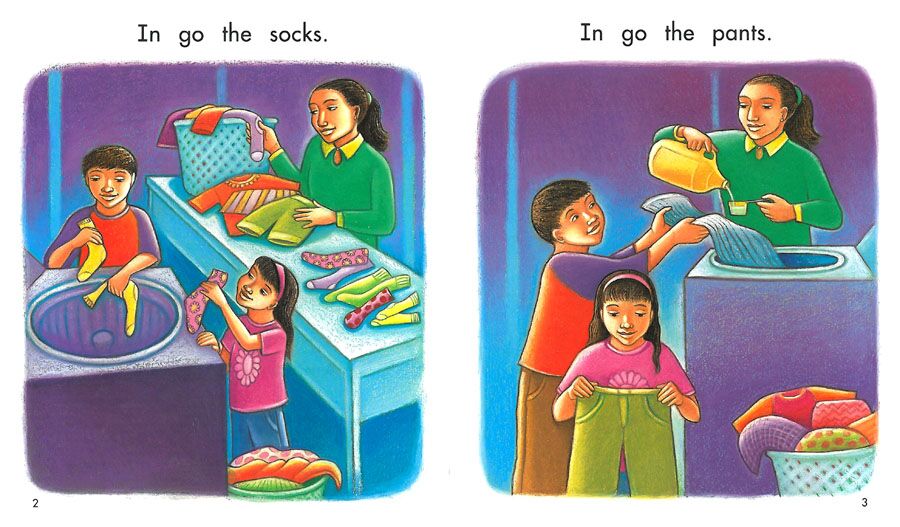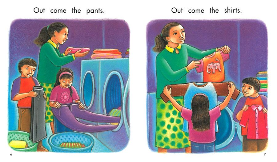 Two Navajo children help their mom do the weekly wash at the laundromat.