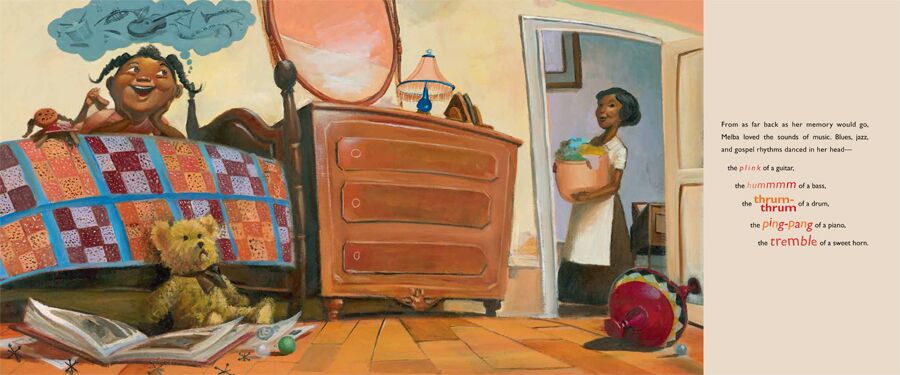 At age seven, Melba fell in love with a big, shiny trombone, and soon taught herself to play the instrument. By the time she was a teenager, Melba’s extraordinary gift for music led her to the world of jazz. She joined a band led by trumpet player Gerald Wilson and toured the country. Overcoming obstacles of race and gender, Melba went on to become a famed trombone player and arranger, spinning rhythms, harmonies, and melodies into gorgeous songs for all the jazz greats of the twentieth century: Randy Weston, Duke Ellington, Count Basie, Billie Holiday, and Quincy Jones, to name just a few.