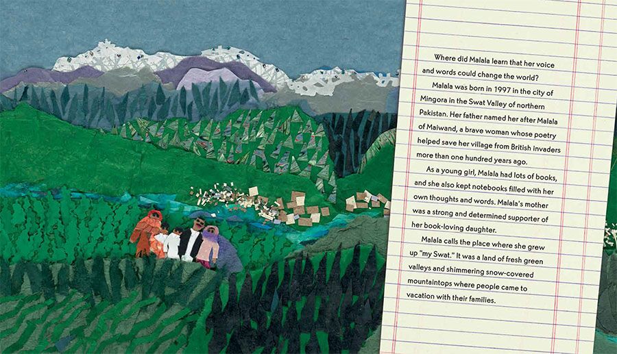Growing up in the Swat Valley of Pakistan, Malala Yousafzai loved books and school. But in 2009, the Taliban came to power and closed all schools for girls. Malala, just eleven years old, began to speak and blog about the right of all children to receive an education.