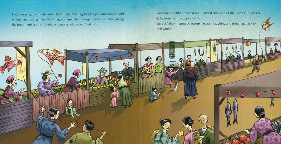 Curious, the samurai urges his horse forward. Just then, a bolt of lightning flashes and strikes the tree behind him, splitting it in two. The beckoning cat has saved his life. In his gratitude, the samurai brings riches to the small temple and the monk, who shares his wealth with the village.