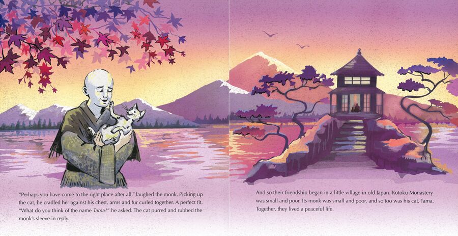 In a small Japanese village, a poor monk and his cat Tama live a simple life at the Kotoku Monastery. One day, a great storm passes through the village, and Tama is caught in the rain outside the temple. She waits under the eaves of a small shrine, cleaning her face and whiskers as best she can with her paw. A noble samurai is also passing through, and stops his horse under the cover of a large tree. But through the rain, what does he see? A cat with a raised paw, beckoning him forward?