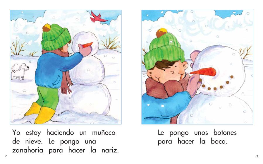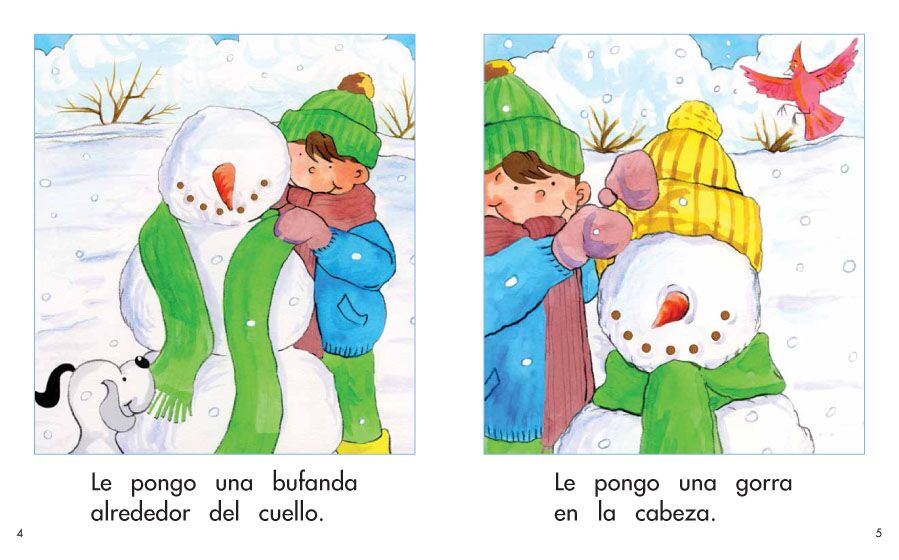 Un niño quiere hacer un muñeco de nieve. Lee este libro para ver cómo lo hace.