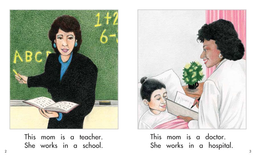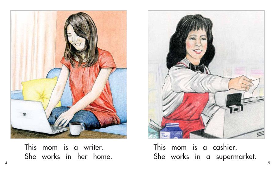 Moms do many different kinds of work. This book tells about some of the jobs moms have.