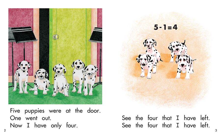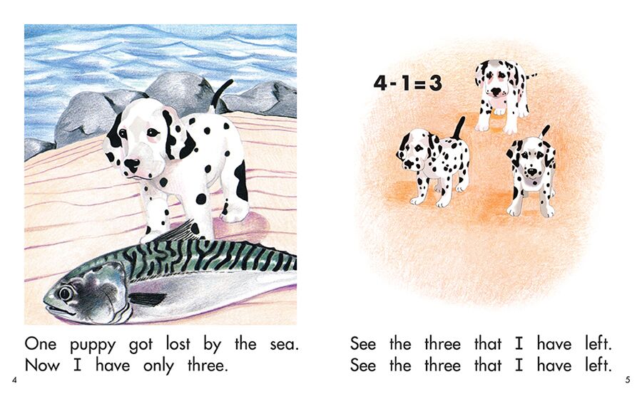 A girl has five puppies but ends up with only one. Read this fun rhyme to find out what happens.