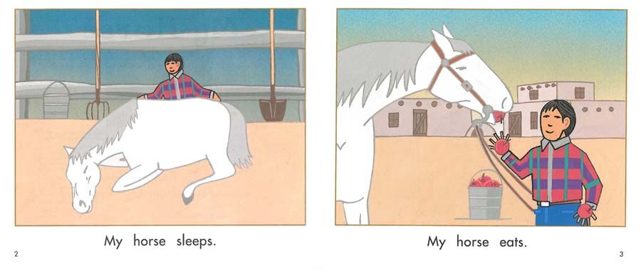 Karen Hjemboe was born in Eau Claire, Wisconsin. She has written many stories for children’s magazines, and has taught first grade for six years on the Santo Domingo Pueblo Indian reservation in New Mexico. Karen loves animals. She has seven cats, a dog, and a horse named Tally Man. Karen and her husband live in Corrales, New Mexico.