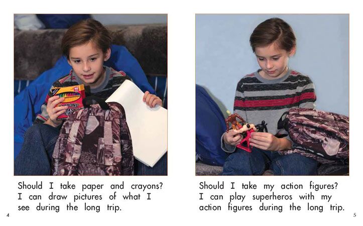 A boy is going on a long car trip. What do you think he will take to keep himself busy on the trip?