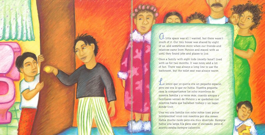 Five little brothers, two parents, and a house full of visiting relatives make a young Mexican American girl feel crowded. She loves her family, but how can she get a little space of her own? This delightful memoir of a California childhood, by Amada Irma Pérez, sparkles with exuberance and wit.