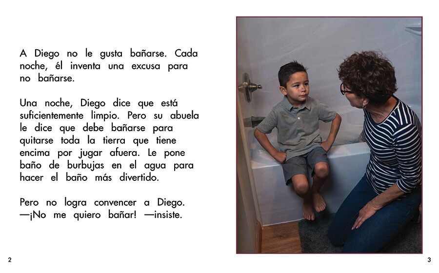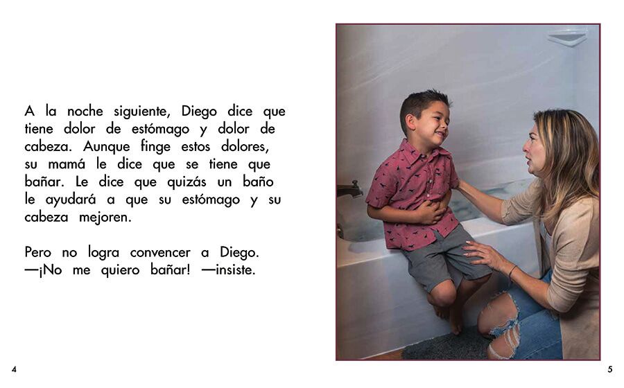 A Diego no le gusta bañarse. Lee este cuento para que veas qué le pasa.
