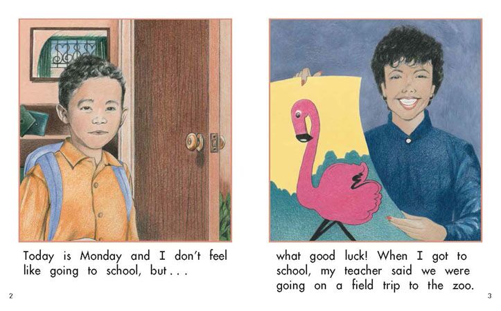 A boy is headed to school on Monday. Read to find out if the day brings him good luck or back luck.
