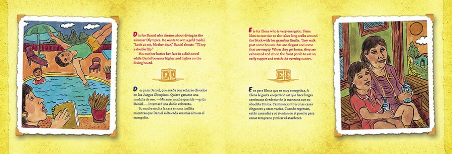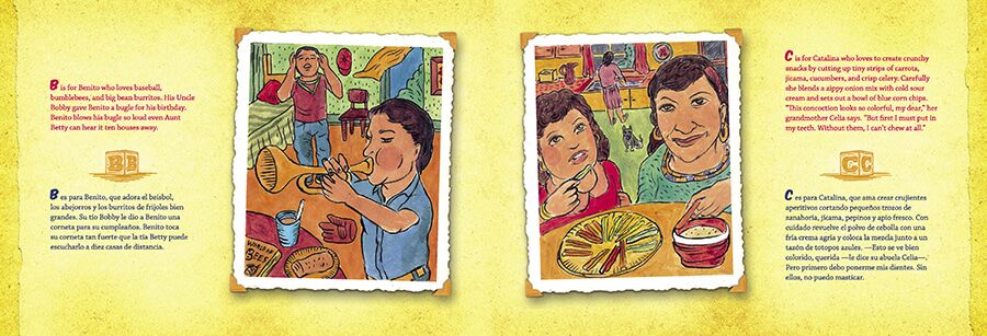 There’s always a lot of action in the neighborhood where Mr. Lozano lives: Amelia argues with Anita; Benito loves bean burritos but not bumblebees; Chuy, Toño, Lluvia just arrived from Chihuahua; and Zacarias is catching some Zs on Zachary Street. José Lozano’s wacky little stories and illustrations combine Mexican culture with the neighborhood charm of Sesame Street to make for a wonderful read-aloud ABC book in Spanish and English.